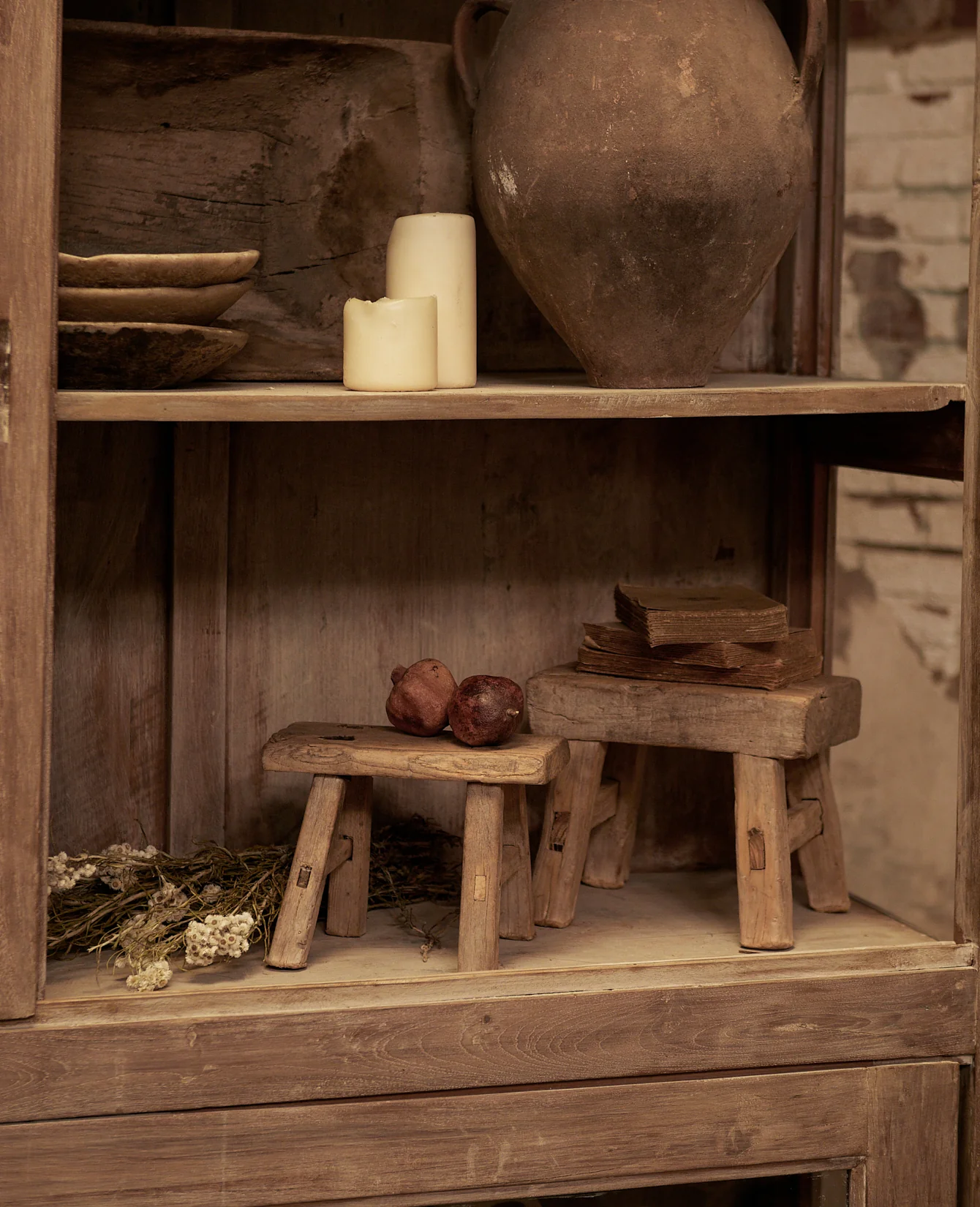 Originally used as milking stools in rural China and repurposed today as a pedestal for prized possessions.