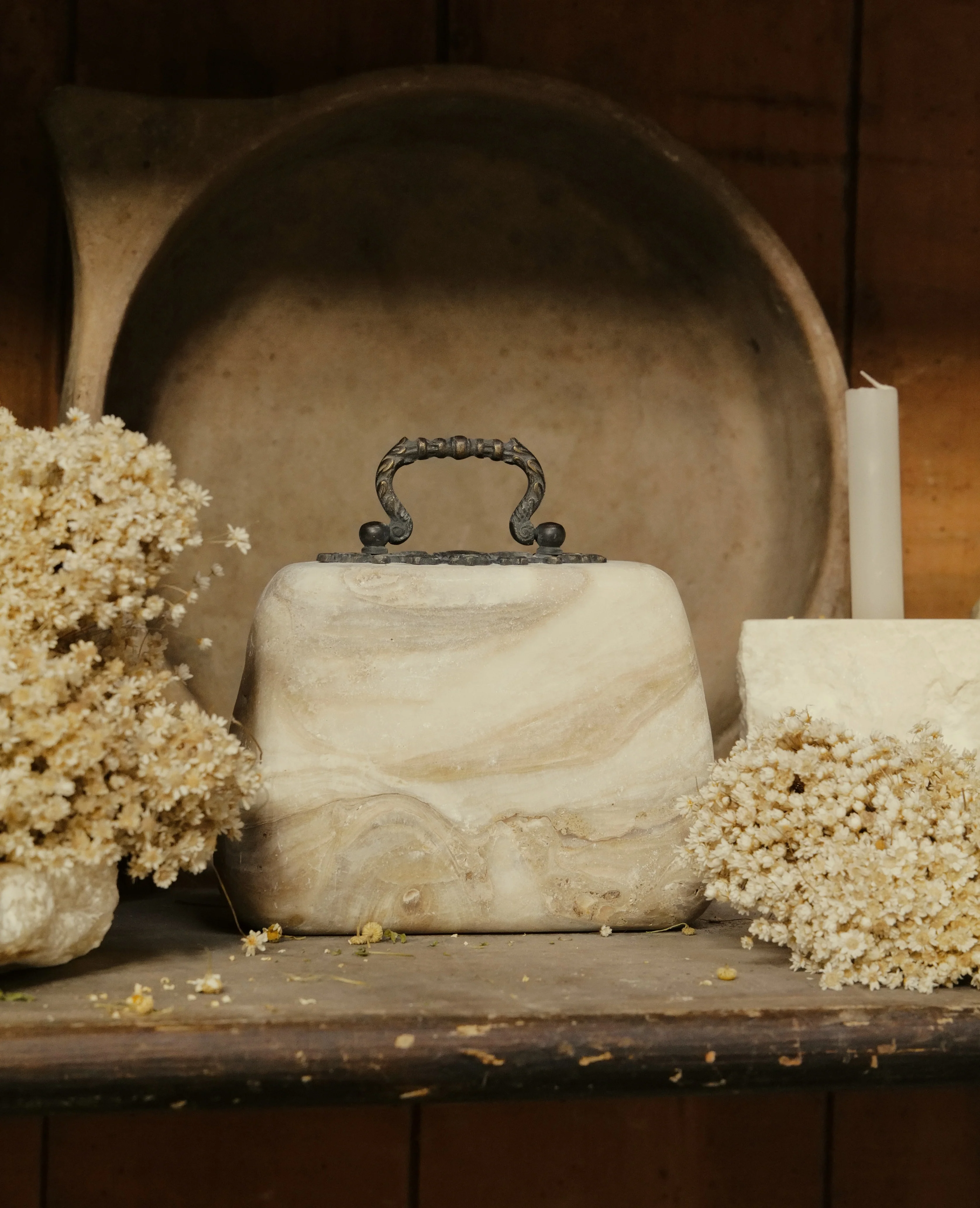 Expect varied hand-carved texture, tone, unique veining and cavities. Each is one-of-a-kind, decorative, and paired with a vintage inspired handle.