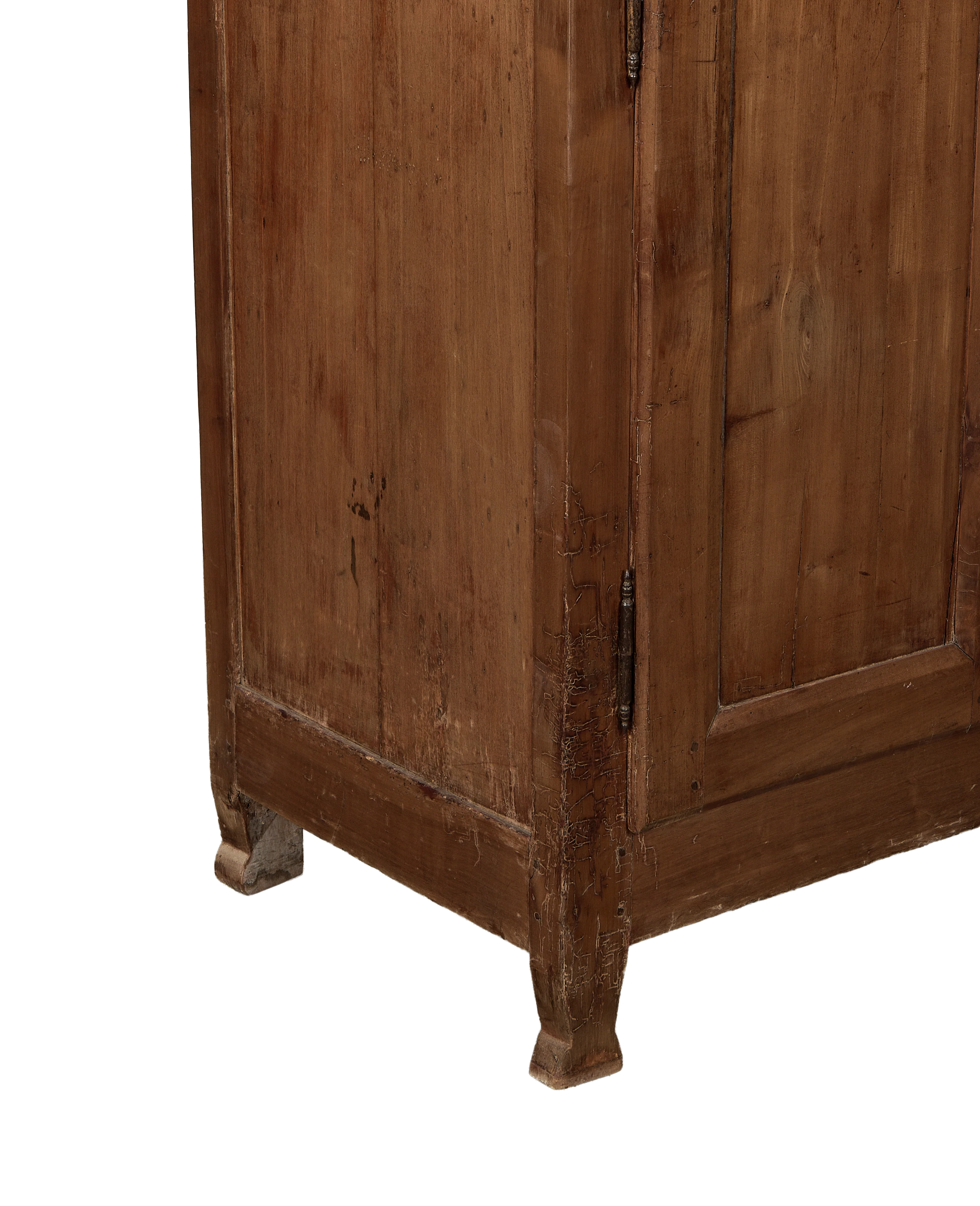 Expect natural wood inconsistencies, historical surface wear, and minor repairs reflecting its age and functional history. The brass hardware shows a charming patina consistent with years of use.