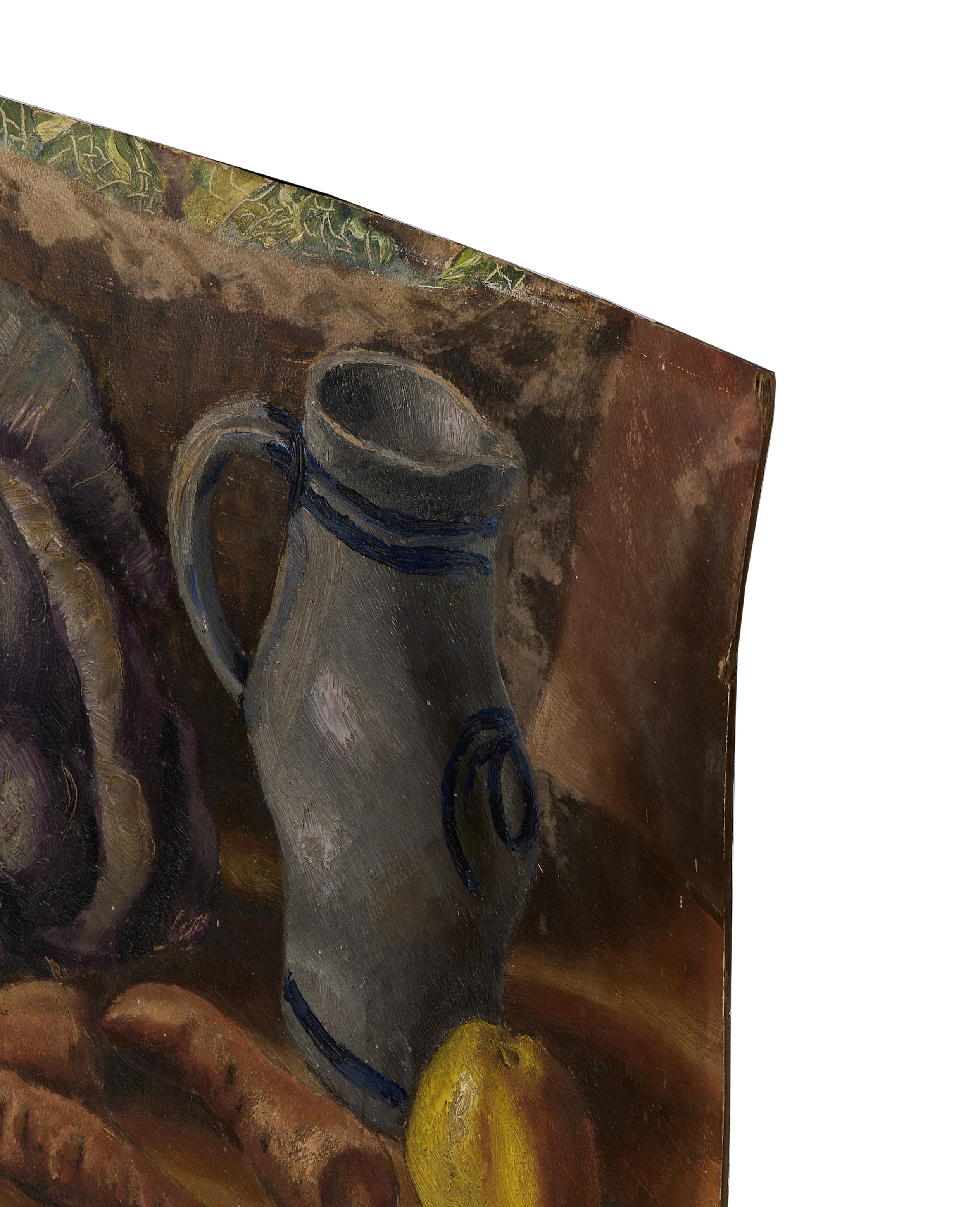 The composition evokes a sense of collected beauty and heritage, drawing the eye to the rich, layered textures. The deep, warm palette and visible craft of the painter suggest a quiet domesticity, a historical moment captured in pigment. This work, possibly re-purposed from a larger original piece, exhibits a beautifully worn-in character.