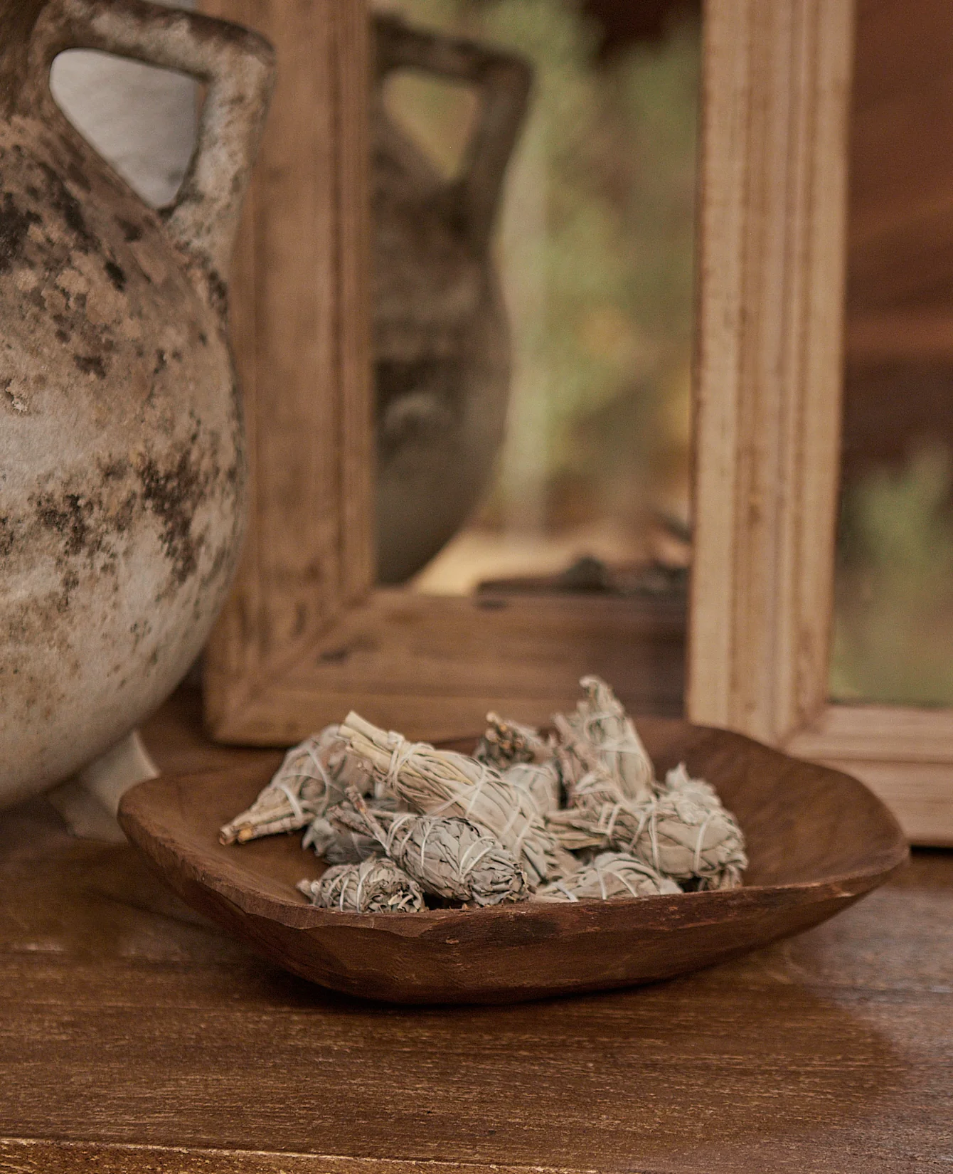 Expect varied wood coloration, texture, and silhouette and signs of wear and tear.
