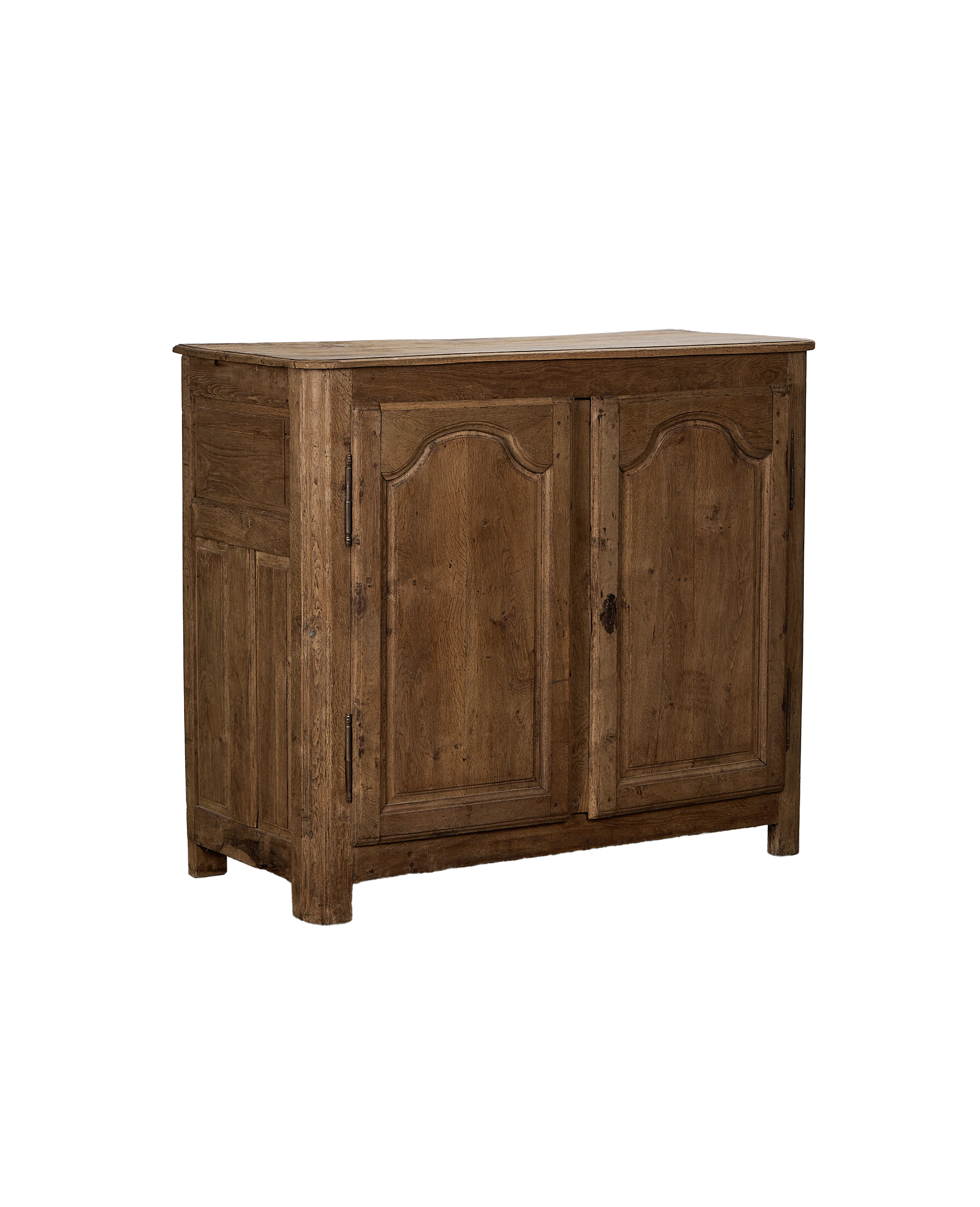 Object is exactly as shown. This French sideboard, crafted from solid wood, quietly carries a storied past within its inviting form. The rich, worn-in patina of its surfaces, coupled with the elegant, subtly curved panels of its doors, speaks to a heritage of European craft and enduring design.